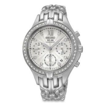세이코import 세이코 Seiko Womens 35mm Swarovski Solar Chronograph Watch In Stainless Steel 남성 맨즈 손목시계 【병행수입품】
