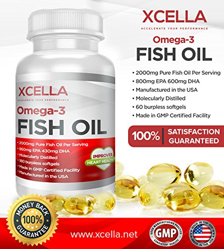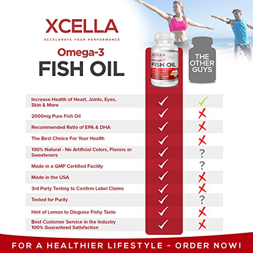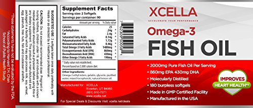 #1 FISH OIL | XCELLA's Omega-3 Fish Oil | 2000 mg for a Healthy Heart-860mg of EPA & 430mg of DHA.| 180 Softgels | Compare To Tobias Fish Oil!