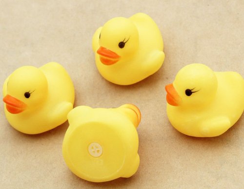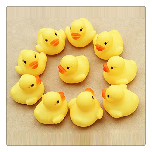 Studio : doinshop Publisher : doinshop Binding : Toy Product Description This set of 12 ducks are perfect for birthday parties and baby showers. Use as a party favor and let each guest take one home for the children to play with in the tub. Perfect size to decorate a cake, fill a goody bag, or float in a punch bowl. These float upright and have a hole in the bottom so they can squeak. 0