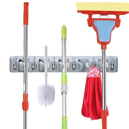 - MULTI-FUNCTION MOP AND BROOM RACK-There are 5 SLIP RESISTANT HANGING SLOTS and 6 FOLDING HOOKS, 35 POUNDS HANGING WEIGHT CAPACITY, ideal for broom, mop, baseball bats and any lightweight item you want out of your way! And stay secure whether they hang straight down or upside down.