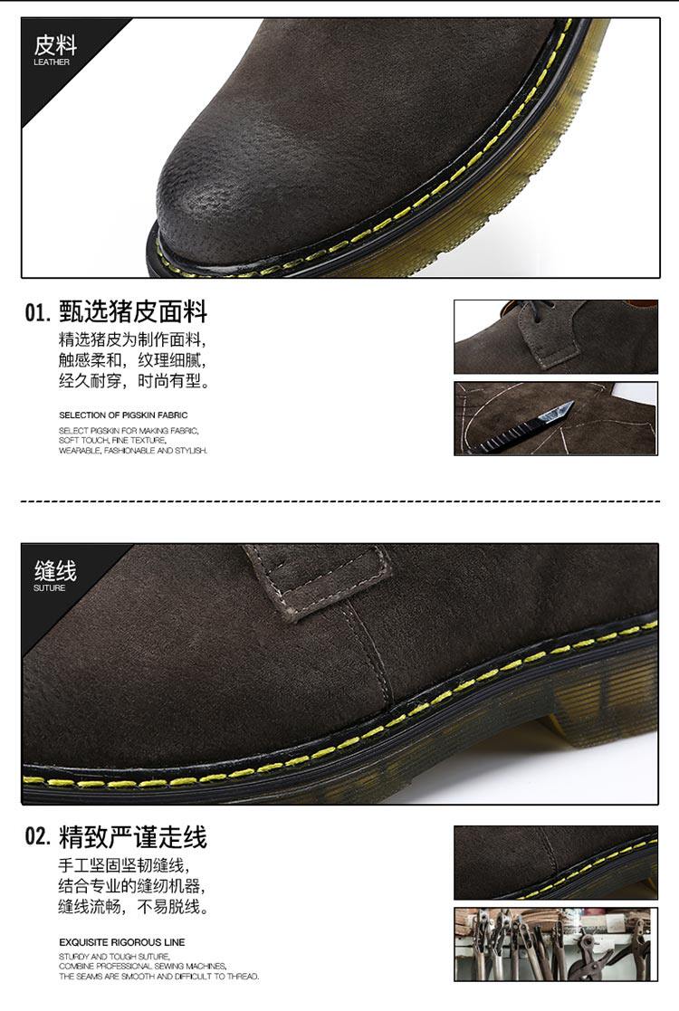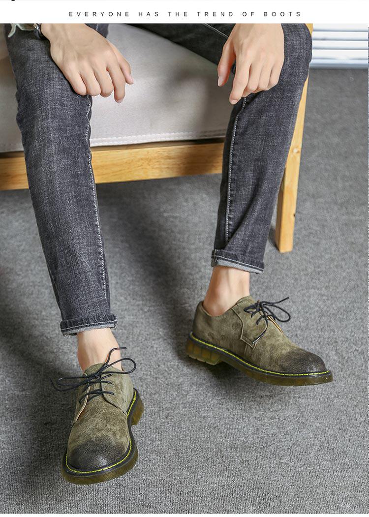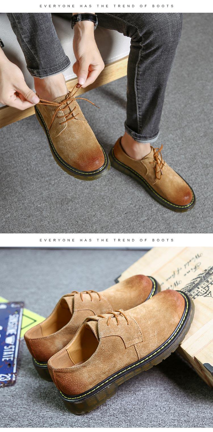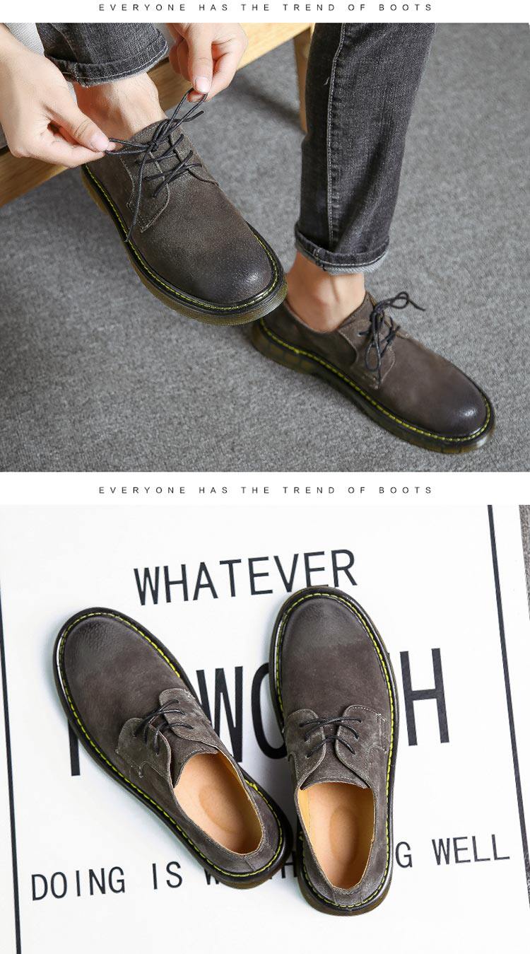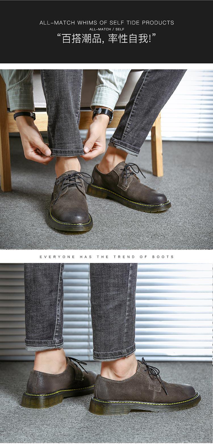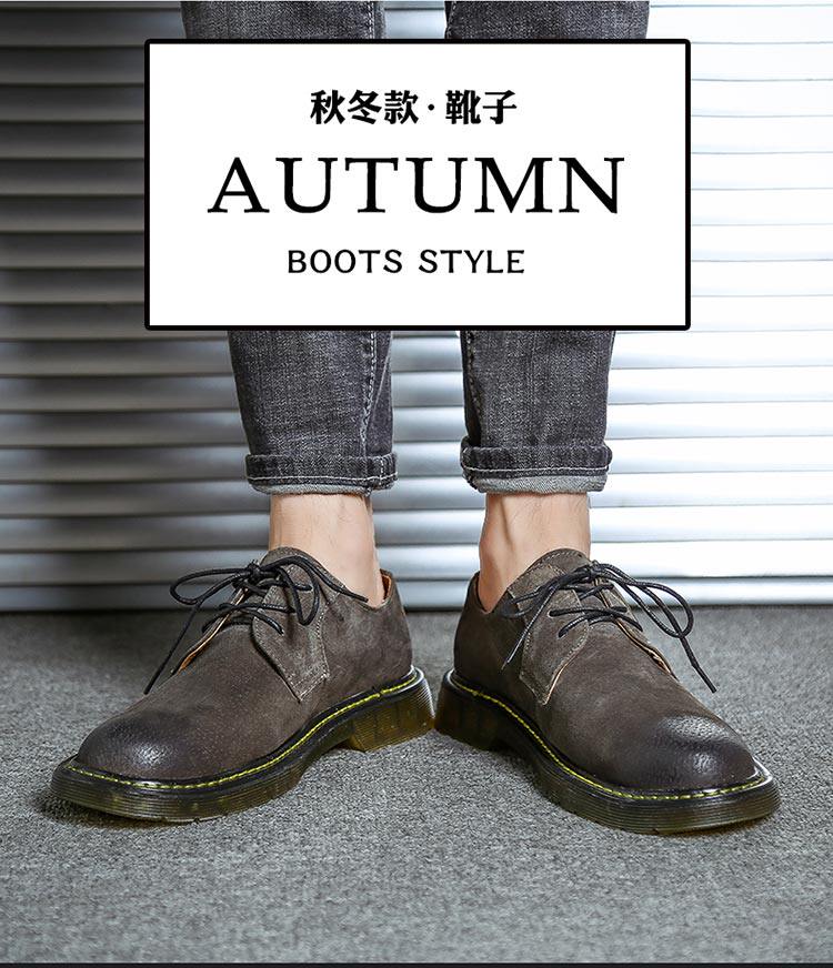 短靴男秋冬青少年大头工装马丁靴真皮复古牛筋男靴低帮平底男潮靴