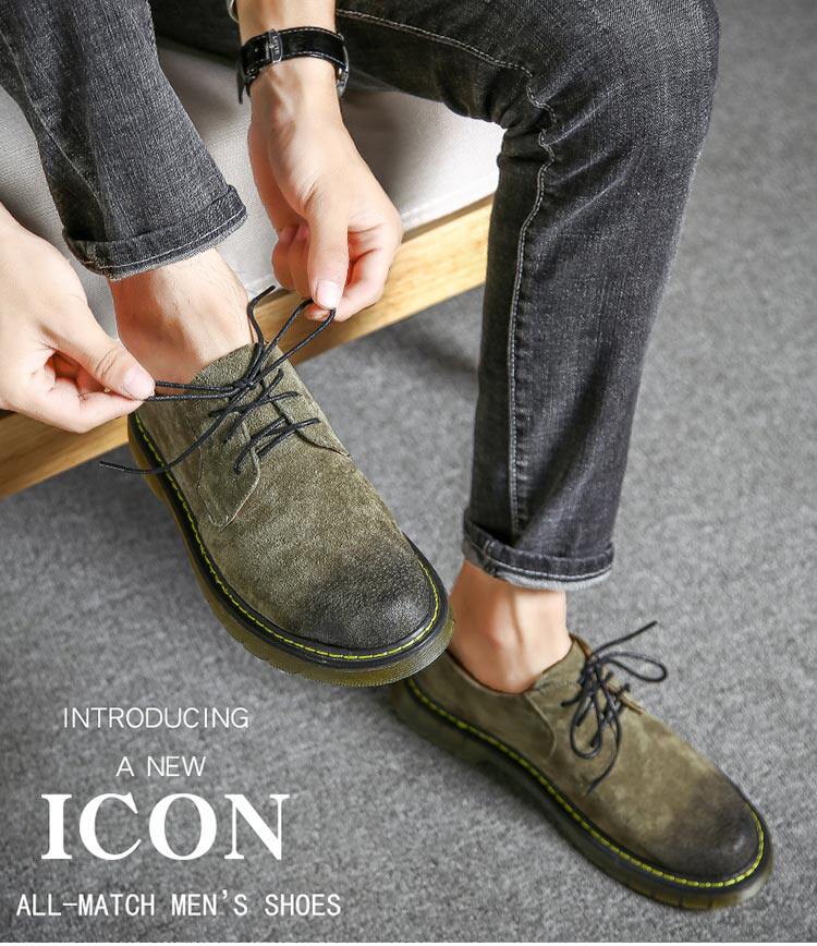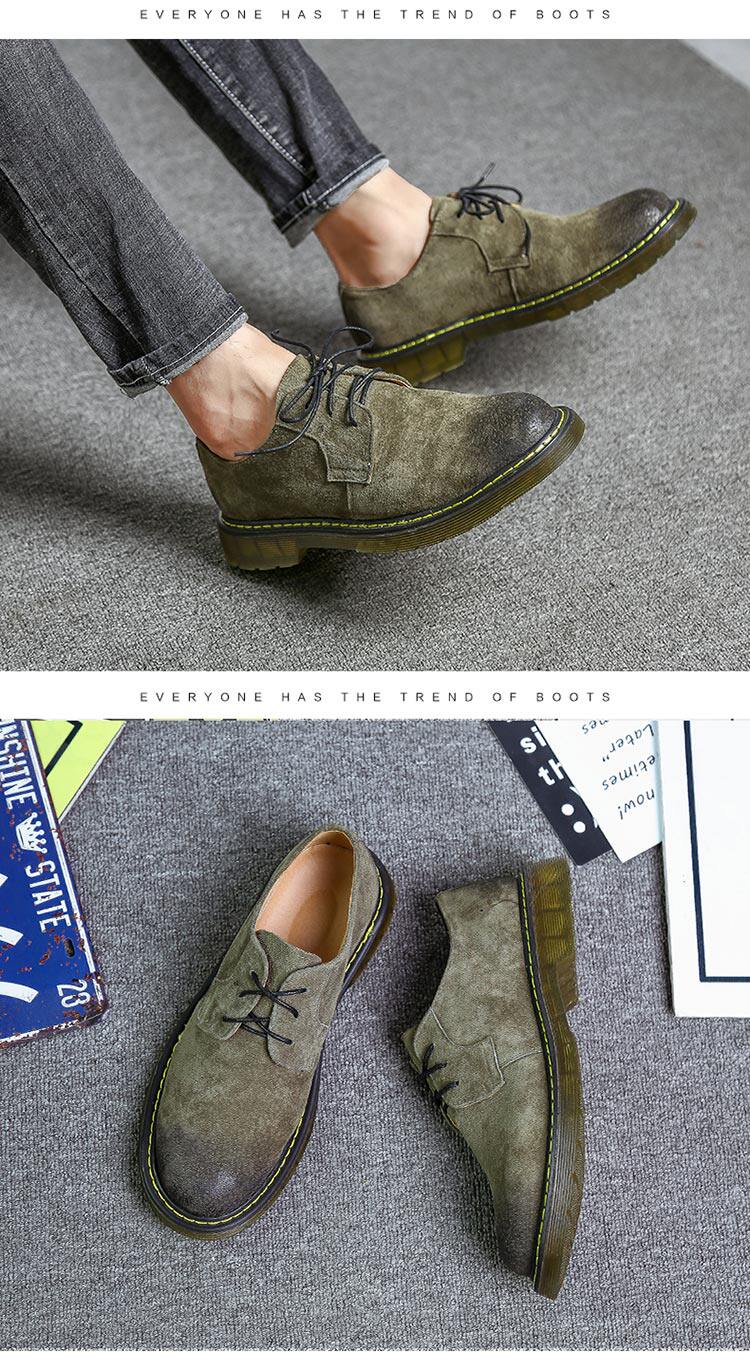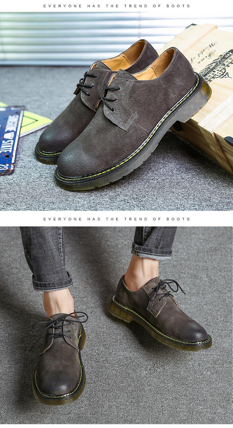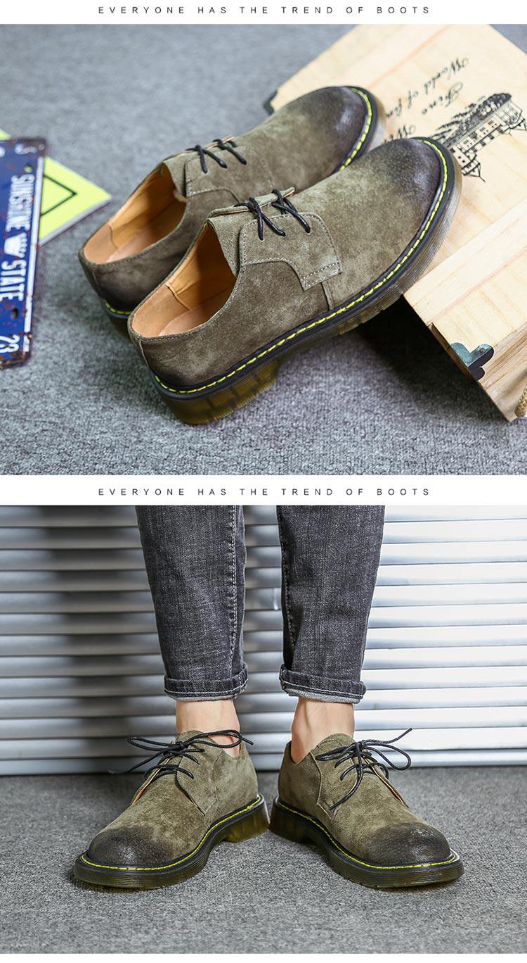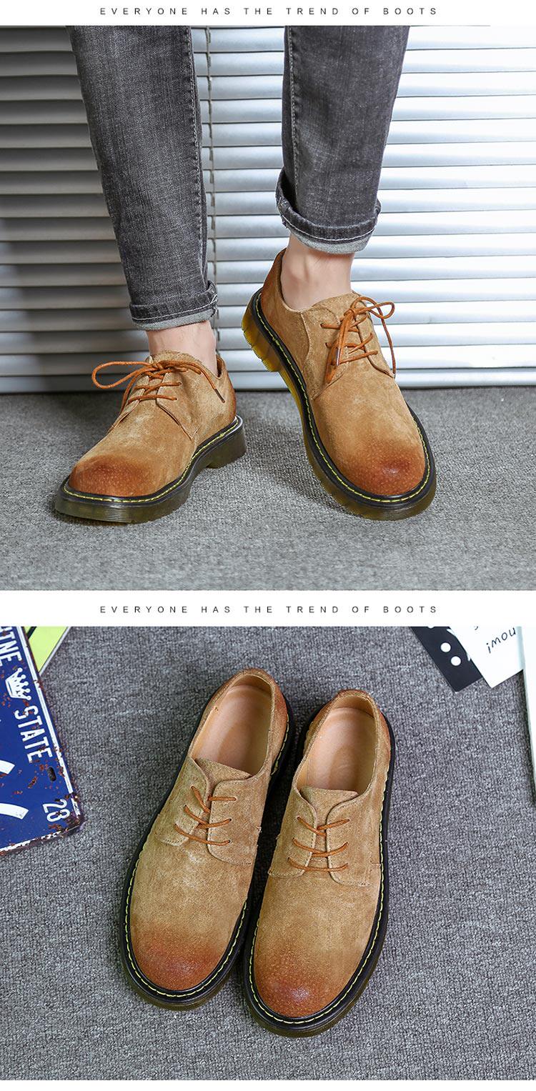 短靴男秋冬青少年大头工装马丁靴真皮复古牛筋男靴低帮平底男潮靴