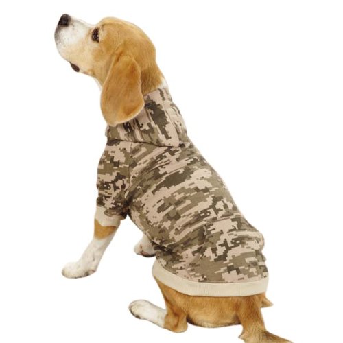 -. Feature : Our Casual Canine Digital Camo Dog Hoodie stays on-trend with its update of the popular camouflage pattern. / This military-inspired camo hoodie will appeal to dogs of all ages / Made with an all-over pixelated camouflage print and a cozy fleece interior / Made of machine-washable poly/cotton with a high-cut, stay-dry belly / Material: 65% Polyester, 35% Cotton. Care: Machine wash in cold water on gentle cycle. Line dry.