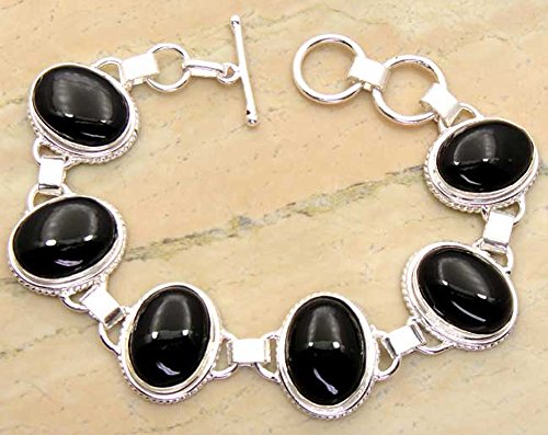 -. Feature : Gemstone: Genuine Black onyx / Gemstone Size: 12x16 oval,Wide: 7/8" Inches ,22 gms / Sterling Silver Plated Over Brass / 100% handmade by High Skilled Jewelry Artisans. / The Main Images are Greatly Enlarged to show the finest of design