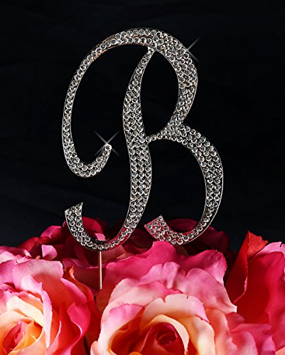 Unik Occasions Sparkling Collection Crystal Rhinestone Monogram Cake Topper - Letter B, Small, Silver