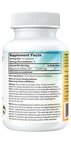Epsom salt is named after the saline spring at Epsom in Surrey, England where it was discovered. Epsom salt is a naturally occurring mineral compound composed of magnesium and sulfate, hence it is also called magnesium sulfate. Epsom salt has been well-documented through the years for its health and well-being benefits, and has been helpful in household chores and gardening task, too.* As a dietary supplement magnesium plays an array of roles in the body. It helps to regulate enzymes that facilitate various functions in the body.* While bones and teeth are heavily reliant on calcium to maintain structure and strength, calcium absorption is enhanced by magnesium. It also helps to regulate heart beat and supports normal blood pressure levels. And sulfates help to improve nutrient absorption.* As a laxative magnesium sulfate increases the amount of water in the intestines, thereby encouraging elimination for occasional constipation relief. This product generally produces bowel movements within 30 minutes to 6 hours after use.* As a liver and gallbladder cleansing aid magnesium sulfate relaxes and dilates the gallbladder, allowing the release of gallstones. Paired with olive oil, these stones are expelled from the body. With Epsom salt in capsules you no longer have to suffer the horrid taste when drinking an Epsom salt solution for liver cleansing.*Feature