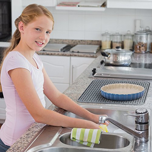 -. Binding : Kitchen -. Brand : Orblue -. Color : Gray -. EAN : 0702854857518 -. Feature : Ribbed drain board designed to keep cups & dishes elevated for maximum drainage & air circulation / Made from FDA Approved food-grade material - Anti-microbial - Heat-resistant & dishwasher-safe / Stylish silicone draining board has non-slip surface to protect your finest glassware from accidental damage / Great for draining freshly washed fruits & vegetables while solid backing keeps your counter dry / 12 x 12 inches - Ultra slim design takes up less space than bulky racks - Our drying mat coordinates well with any kitchen decor -. Label : Orblue -. Manufacturer : Orblue -. MPN : #NA -. PackageQuantity : 1 -. PartNumber : #NA -. ProductGroup : Home -. ProductTypeName : HOME -. Publisher : Orblue -. Studio : Orblue -. Title : ORBLUE Silicone Dish Drying Mat -. UPC : 702854857518