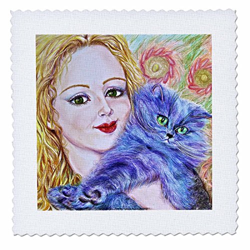 3dRose qs_54891_2 Two Green Eyed Beauties Both Look So Happy with One Another Quilt Square, 6 by 6-Inch