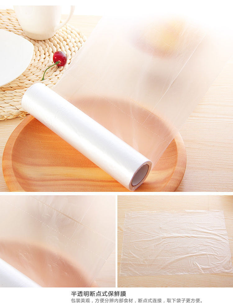 介绍:优质食品级PE保鲜袋,点断式链接,撕取方便,无毒无味,