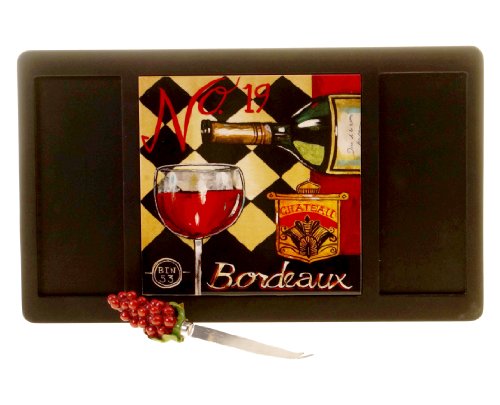 Certified International Tasting Room Wood Cheese Board with Ceramic Tile and Knife, 16.5-Inch by 9.75-Inch