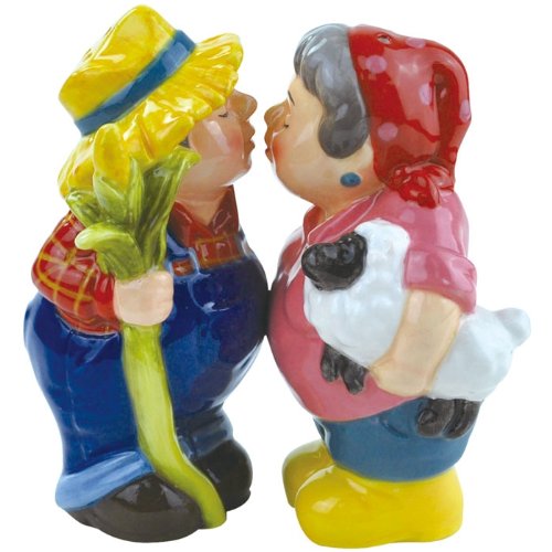 Westland Giftware Mwah Farmer Couple Magnetic Ceramic Salt and Pepper Set, 4-Inch