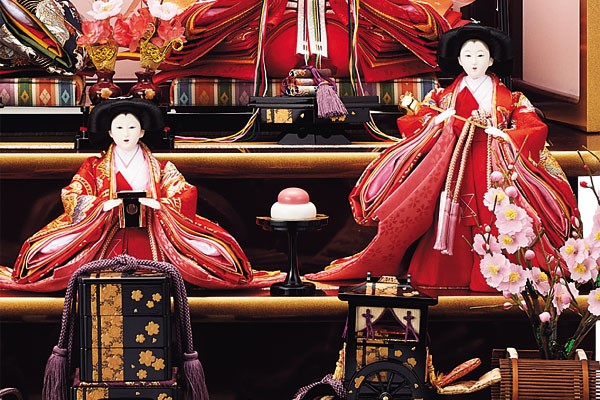 親御様、お子様、縁者様の健康と発展を願いながら職人が丁寧に仕上げた雛人形飾り/雛人形が初節句のお祝いにはなを添えます。