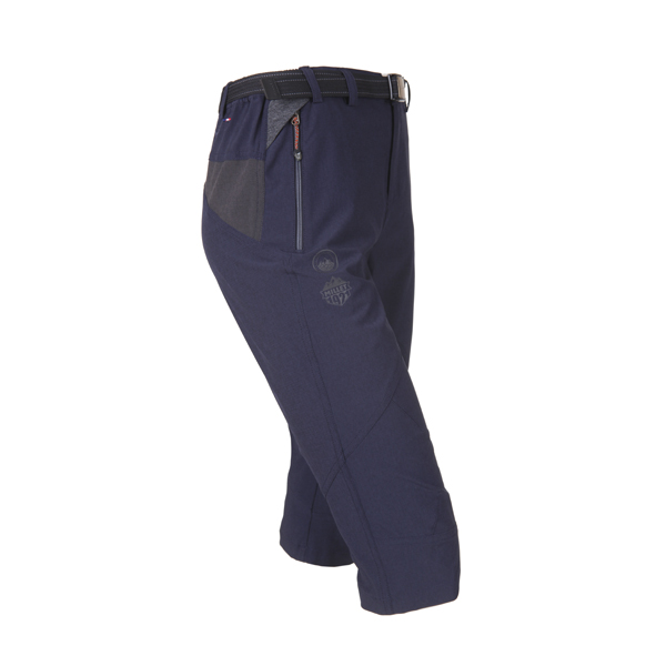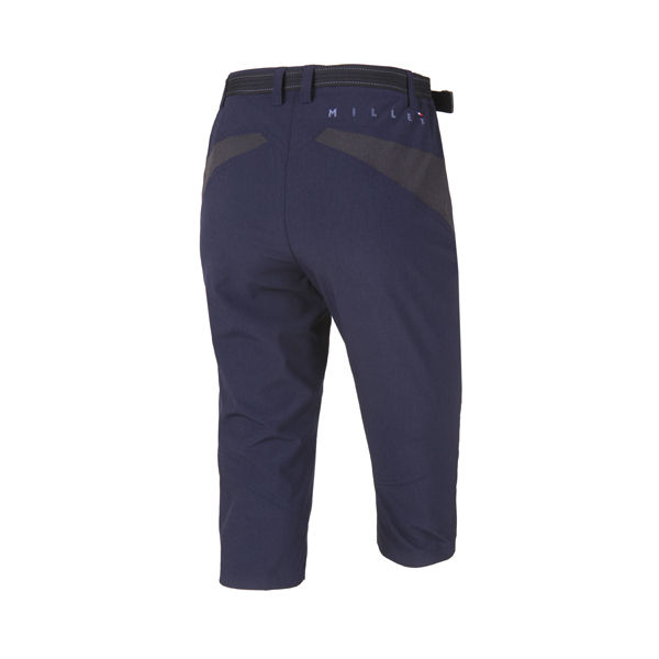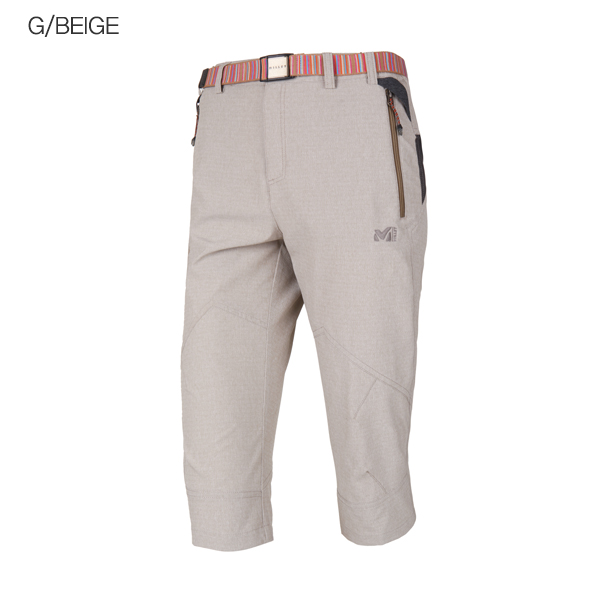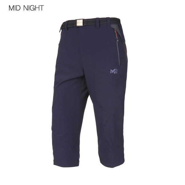 뒷 변형 요크 절개선을 적용하여 슬림한 핏에 무릎에 다트를 넣어 활동이 용이하도록 한 레트로 7부 팬츠.