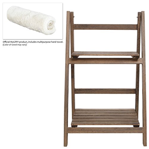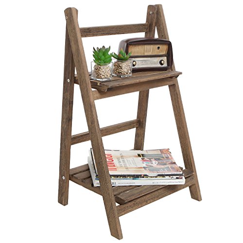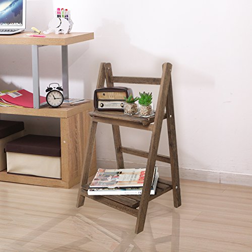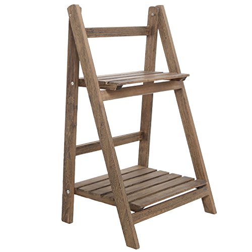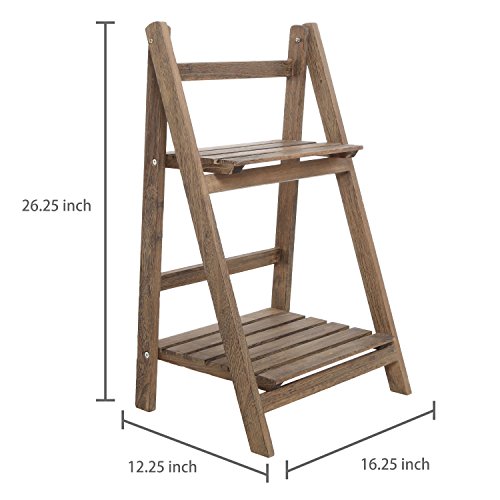Rustic Brown Wood Design 2 Tier Freestanding Foldable Shelf Rack / Decorative Planter Pot Display Stand
