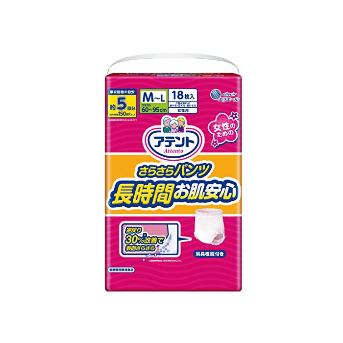 원본상품명: アテント 長時間パンツ M-L 女性用 5回吸? さらさらお肌安心 【介助で?ける方】