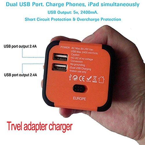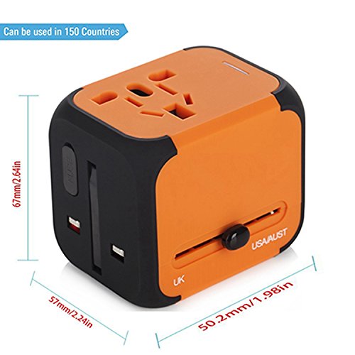 - Multifunction Dual USB Charger - The Universal Plug Adapter with Dual USB Charger is All-in-One Adapter Design that enable you no need to carry multiple adapters during traveling around the world. You can charge any electrical devices in worldwide. Such as iPhone/Samsung, digital cameras, mp3 players, bluetooth speakers and so on.