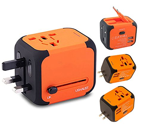 Ailuner Travel Adapter,Worldwide Power Converters Universal World Travel Plug Adapter with 2.4A Dual USB Charger & Worldwide AC Wall Outlet Plugs for USA EU UK AU. (Orange)