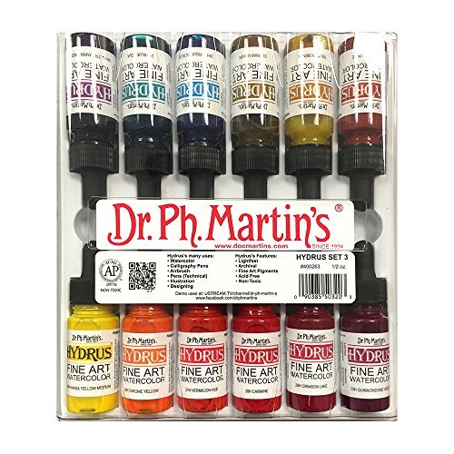 Dr. Ph. Martin's 400263-XXX Hydrus Fine Art Watercolor Bottles, 0.5 oz, Set of 12 (Set 3)