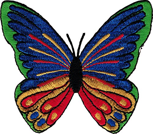 Beautiful Butterfly in Primary Colors (Red, Orange, Yellow, Green, Blue, Purple & Black) - Embroidered Iron On or Sew On Patch