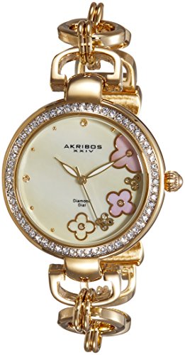 Akribos XXIV Women's AK874YG Round Cream Mother of Pearl Dial Three Hand Quartz Gold Tone Strap Watch