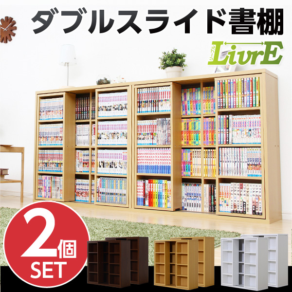 スライド書棚(2個セット)【-Livre-リーブル】(ダブルスライド・浅型タイプ)