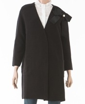 롱기장의 아우터 가디건으로 코디가 용이하며 리본 브로치 장식이 여성스러운 느낌을 줍니다.