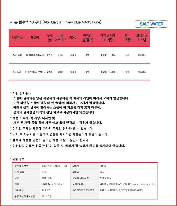 아부가르시아 블루맥스선3 보증서포함