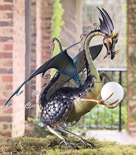 Dragon Garden Sculpture With Solar Globe