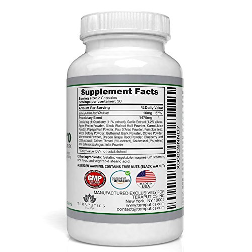 - Feature : ✔THE LEADING BRAND OF PARASITE CLEANSE FORMULAS - Our adherence to integrity, quality and potency has made Teraputics ParasitePro a best seller in supplements / ✔TOUGH ON PARASITES, GENTLE ON YOU - Contains Wormwood, Black Walnut, Goldenseal, Cloves, Garlic, Cranberry, as well as many other vital ingredients to combat and remove the parasites within your body. All our ingredients are perfectly formulated together in our state of the art lab right here in the United States. ParasitePro helps combat all 3 stages of the parasitic life cycle (Adult, Intermediate, and the Eggs) / ✔THIRD PARTY TESTED FOR PURITY AND POTENCY - With 1475mg per capsule each bottle contains 60 capsules which is one complete parasite cleanse regimen. Our ParasitePro formula is of the highest quality and 100% pure making it a preferred alternative to other products that carry undesired side effects. / ✔100% MONEY BACK GUARANTEE - Our ParasitePro formula is made adhering to the highest GMP standards of product integrity; so if for any reason you are not satisfied with this formula you can get a full refund with no questions asked. Our customers MUST be satisfied / ✔PERSONALIZED CUSTOMER SUPPORT - With every Teraputics purchase our customers gain access to our team of highly trained service professionals, available to help with questions about any of our health products