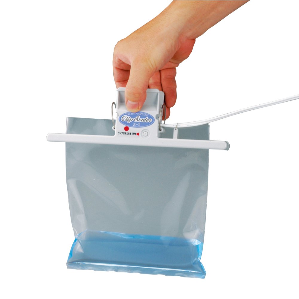 Grab the handle of the clip, open your mouth, sandwich the bag!