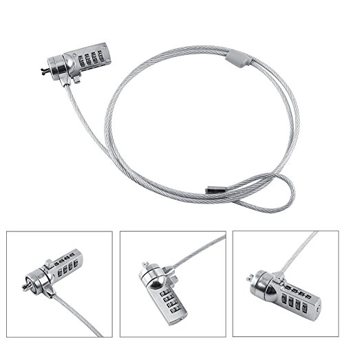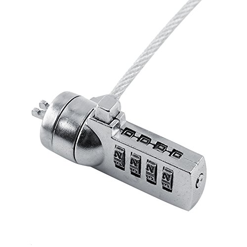-. Feature : Superior strength lockhead to resist tampering. / 4-digit resettable function, reach to 10,000 combinations, set up your unique combination for maximum security. / Plated steel cable with alloy steel lock body, fortitude and stability, serves as an ideal theft deterrent. / Convenient operation with 90-degree swivel cable joint, easy to install and safe to use. / Works with all notebooks, desktops, docking stations with built in standard security locking slot hole.