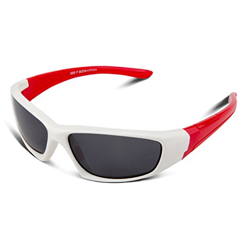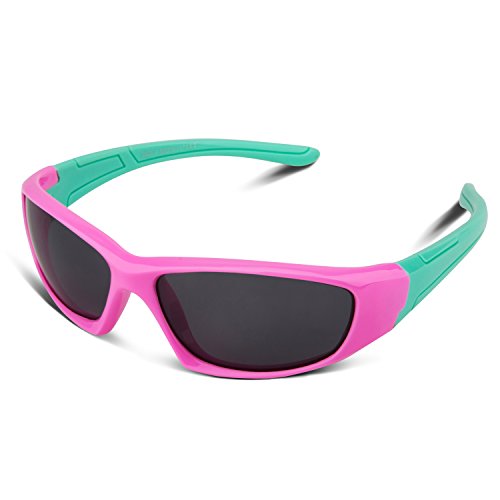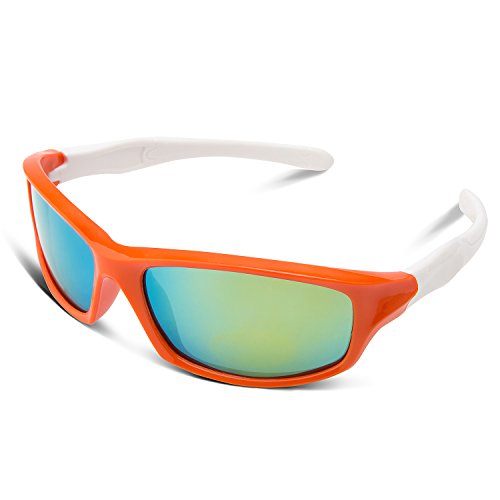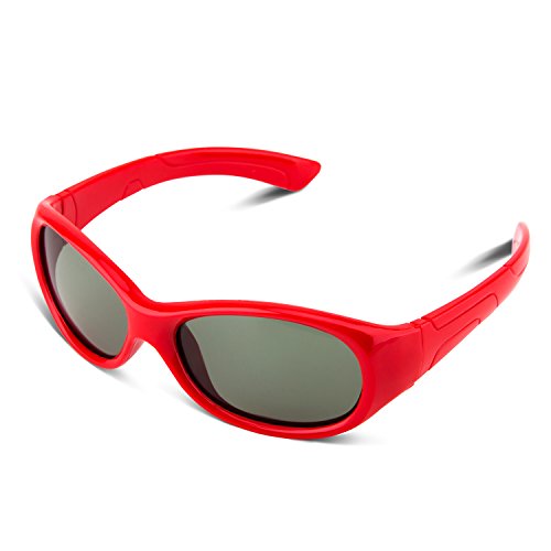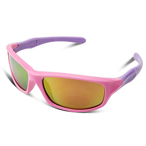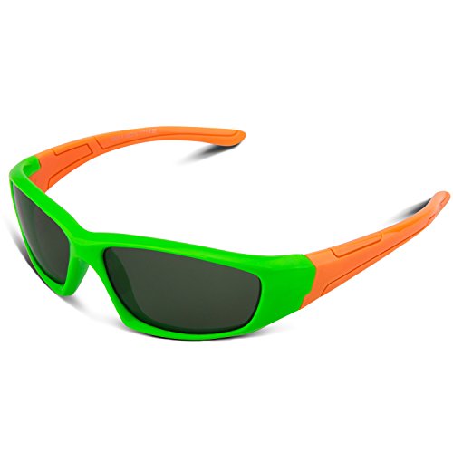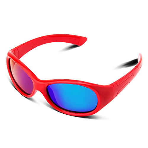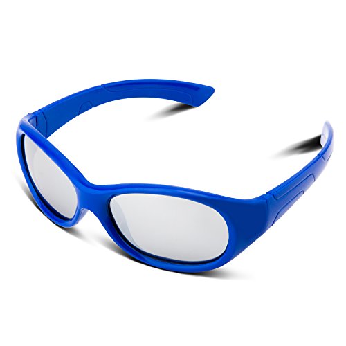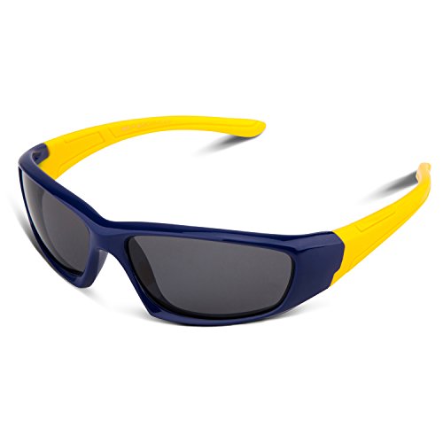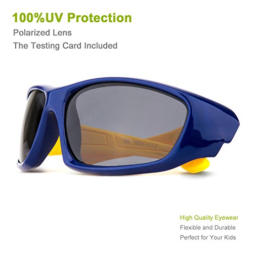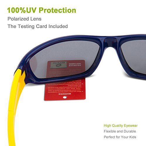 RIVBOS Children's Polarized Sunglasses Keep your child's eyes protected from the sun year round with RIVBOS sunglasses. Available in bright, bold colors, our sunglasses block 100% of the sun's harmful UVA & UVB rays and meet AOA (American Optometric Association) specifications for non-prescription sunglasses. Made of flexible Dupont rubber, they also feature polycarbonate impact & scratch resistant lenses. Polycarbonate impact and scratch resistant. Completely flexible and virtually unbreakable arms made of 100% Dupont rubber.Feature