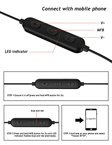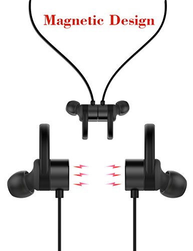 -. Feature : COMPATIBILITY:Compatible with most Bluetooth-enabled devices like iPhone 8, iPhone 8 Plus, iPhone 7 Plus, iPhone 7, iPad, iPod & Samsung Galaxy S7, and will connect automatically with a phone paired previously / CVC NOISE ISOLATION TECHNOLOGY: Featured with CVC6.0 noise cancelling technology, it could reduce outside noises, makes you enjoy clear and natural sound. Premium sound with deep bass and crystal clear treble. / CONVENIENT TO CARRY: Built-in magnets let you attach the two headphones together when not using, and wear like a necklace around your neck, a convenient way to carry around when you don't need them, and greatly decreasing the burden on ears / IPX7 WATERPROOF: Bluetooth headphones chip with internal nano-coating treatment and water resistant shell offer a double layer of water resistant protection. Can run in the rain or sweatproof in the gym to enjoy the music or phone communication / PERFECT FOR SPORT: With Ergonomic design and silicone ear hooks, our Bluetooth Headphones are secure behind your ears and rest comfortably in the ear canal. Premium soft smooth silicone gel surface helps sweat proof. It is great for Gym, Running, Jogging, Hiking, Cycling, and impact Sports.