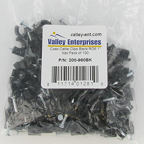 -. Binding : Electronics -. Brand : Valley EnterP.R.Ises -. EAN : 0811714012810 -. Feature : Black Plastic RG6 Coax Cable Clips for Single Coax Cable / Attaches to wood, concrete, brick, masonry and plaster / 1- inch Galvanized Steel Nail / Pack of 100 -. Label : Valley EnterP.R.Ises -. Manufacturer : Valley EnterP.R.Ises -. Model : 200-960BK -. MPN : 200-960BK -. PartNumber : 200-960BK -. ProductGroup : Speakers -. ProductTypeName : COMPUTER_COMPONENT -. Publisher : Valley EnterP.R.Ises -. Studio : Valley EnterP.R.Ises -. Title : Valley EnterP.R.Ises® Black Plastic RG6 Single Coax Cable Clips with 1" Nail Pack of 100 -. UPC : 811714012810
