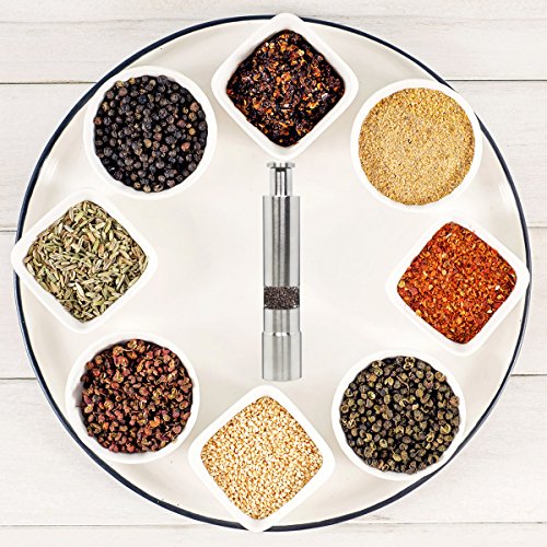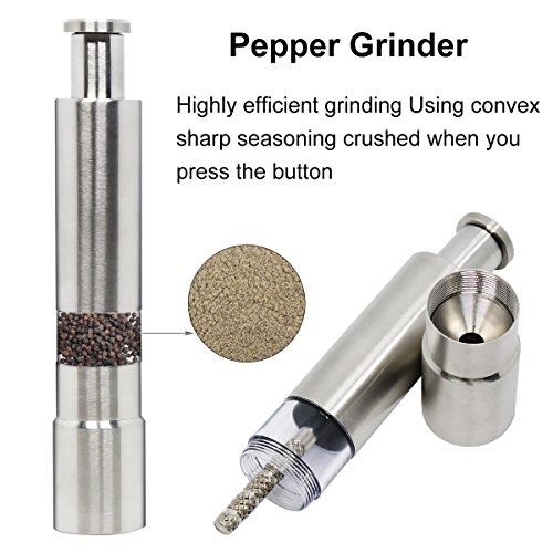 - ►PAPPPER SALT GRINDERS:Convenient one handed operation, spice your food effortlessly at the push of a button.You can add spices to your food easily while you cook, even when you hold a lid or spoon in your other hand.