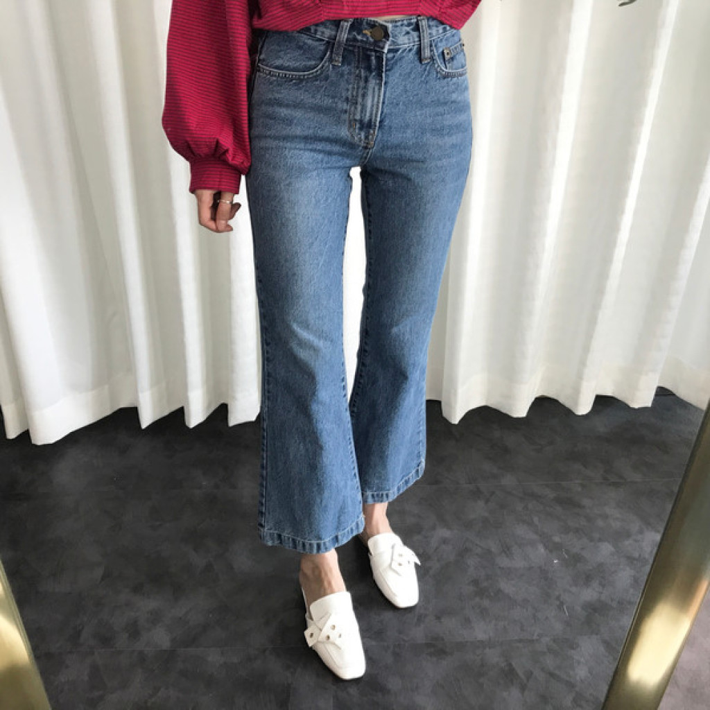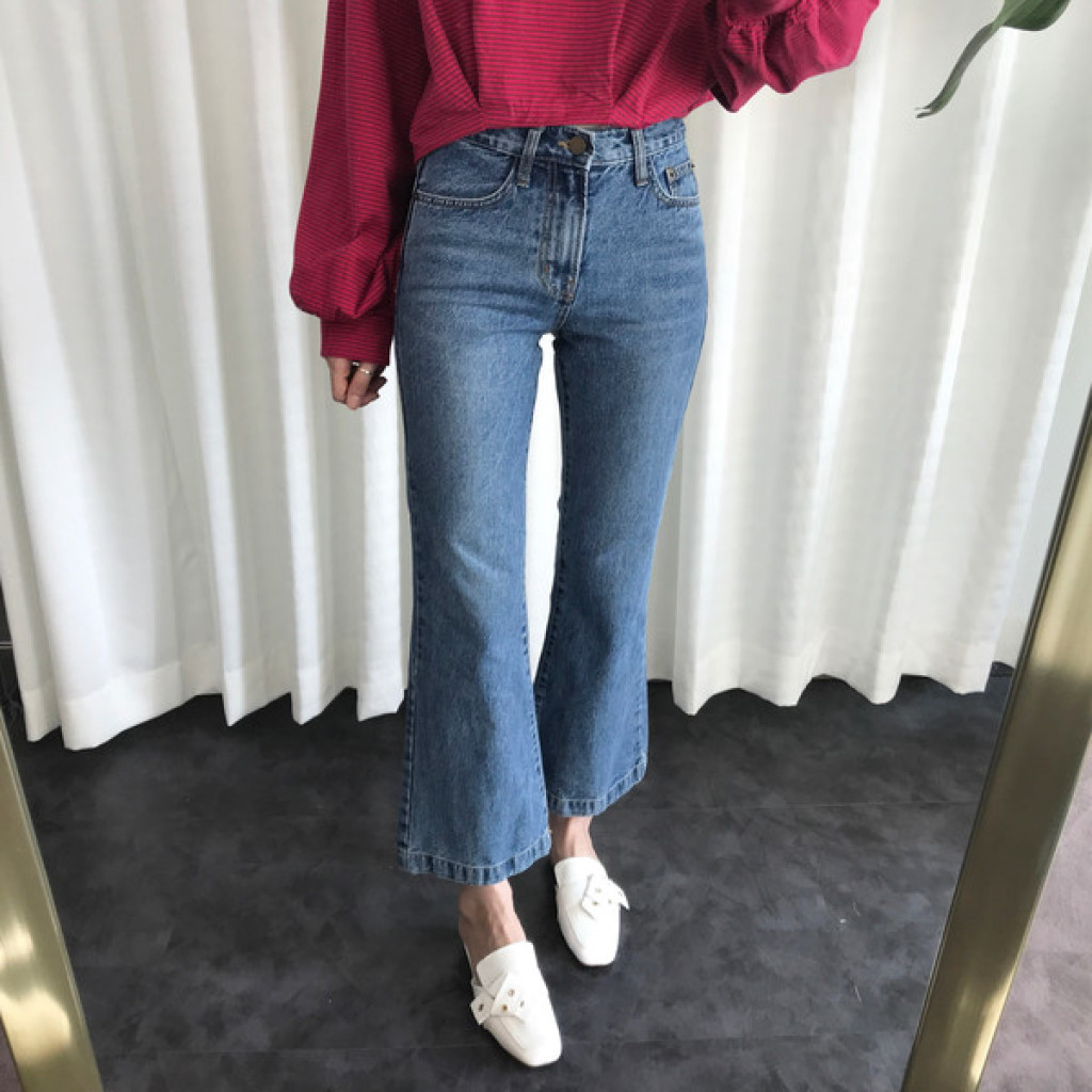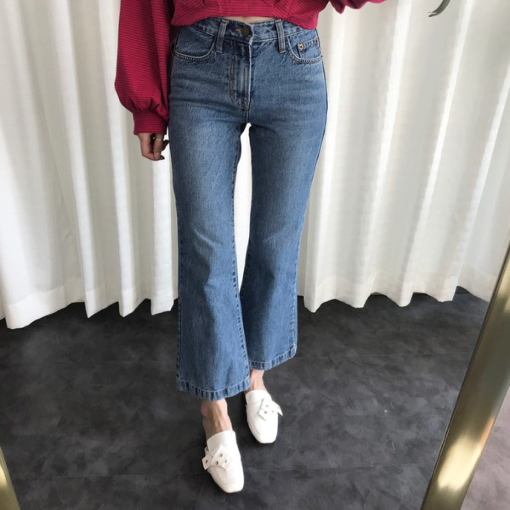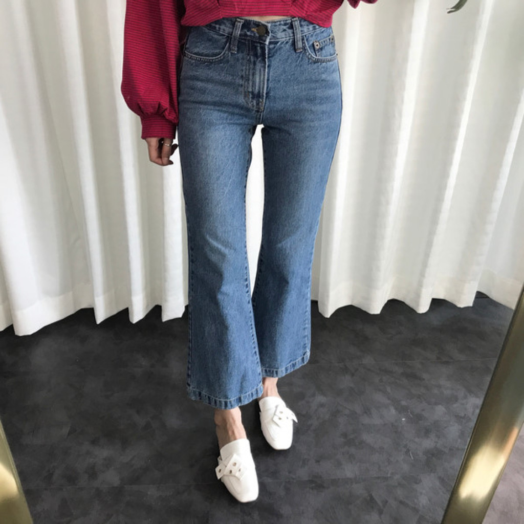 밑단이 약간 와이드하게 퍼지는 스타일의 청바지라