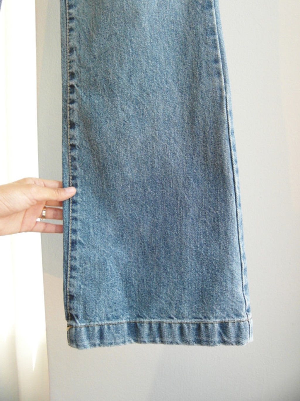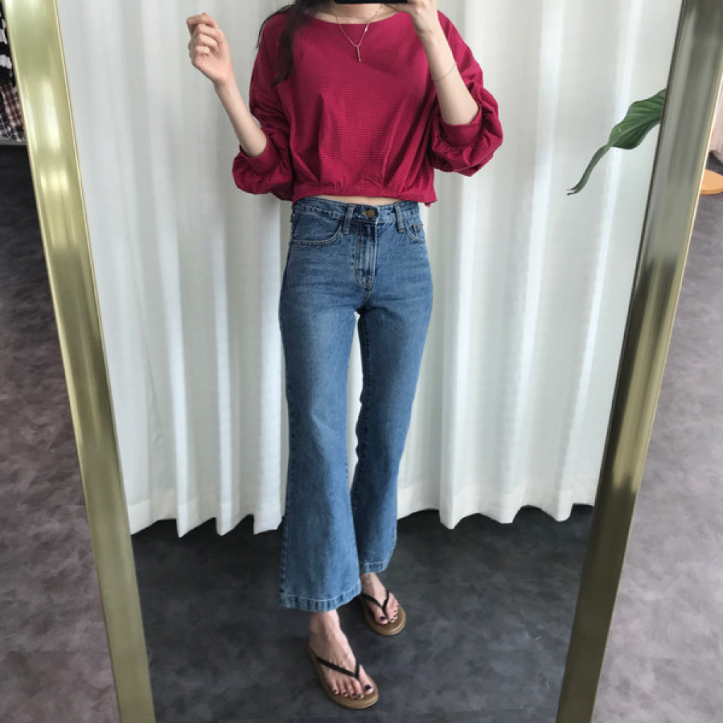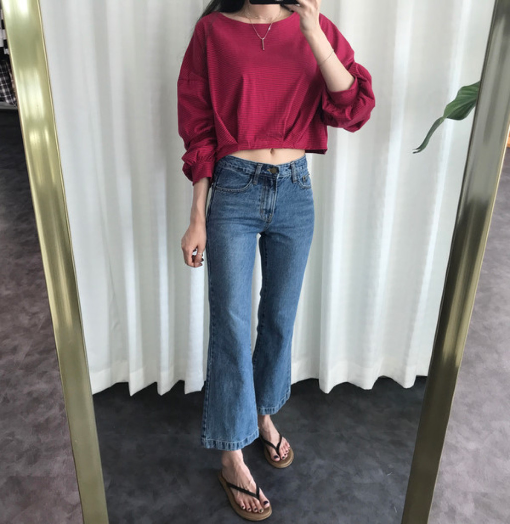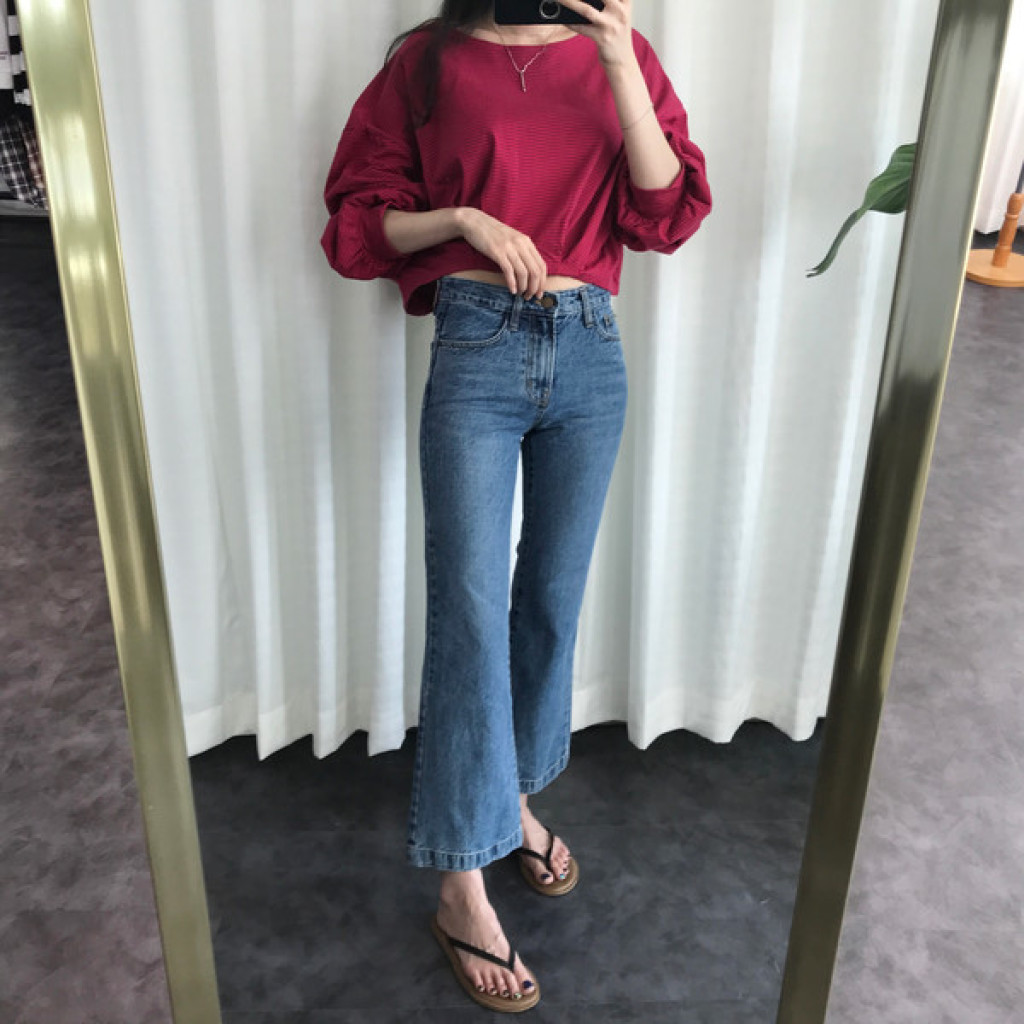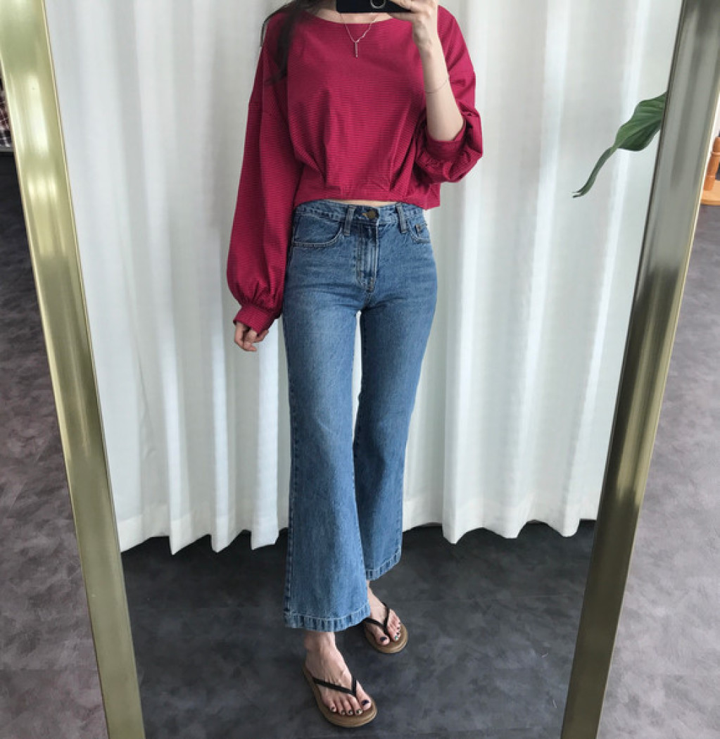 밑단이 약간 와이드하게 퍼지는 스타일의 청바지라