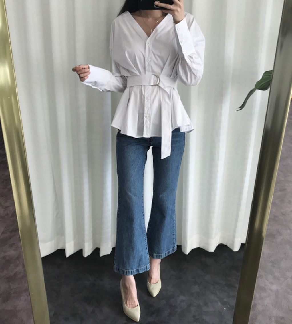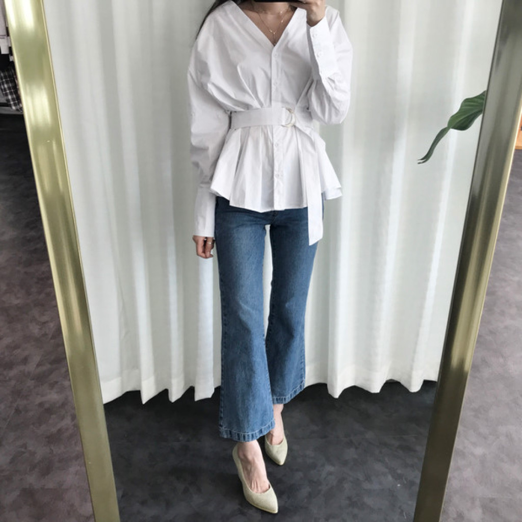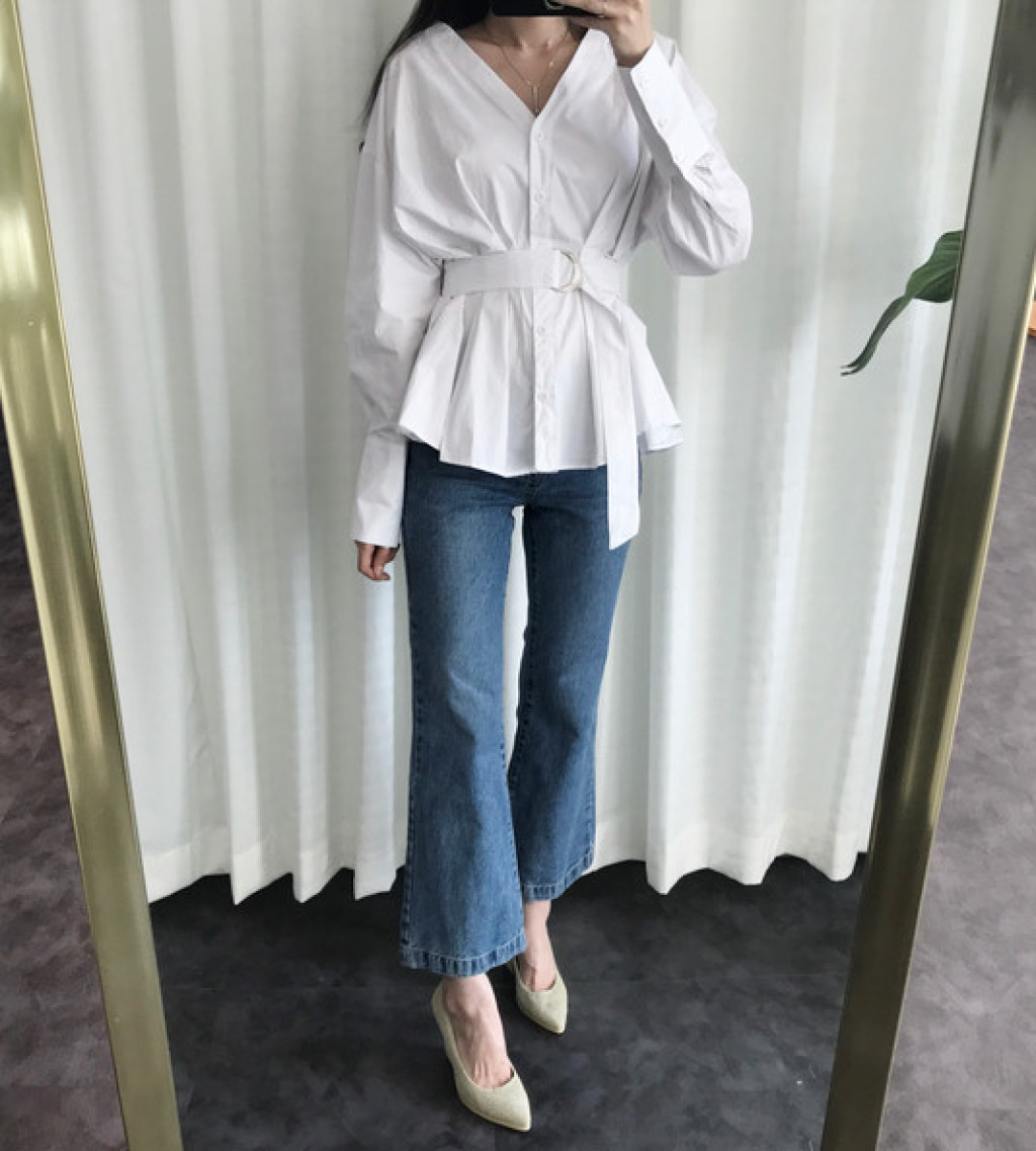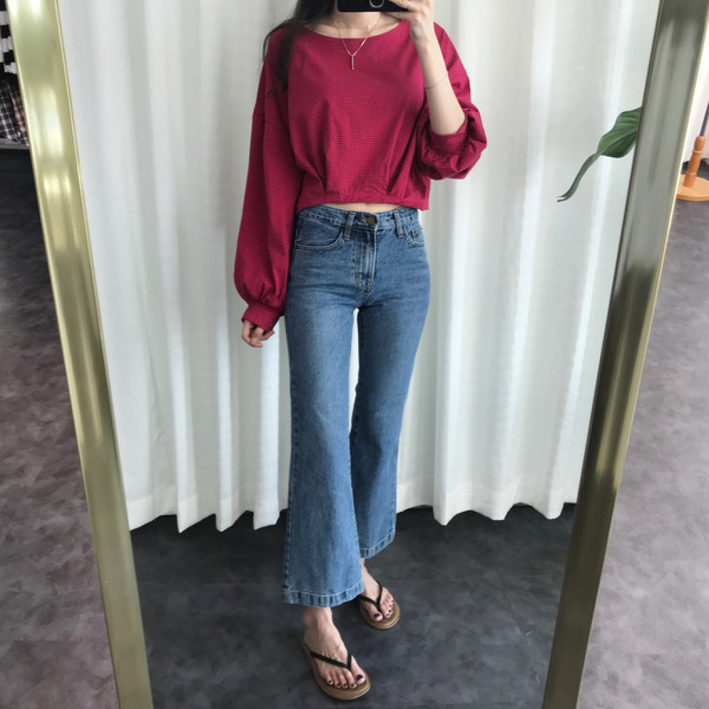 밑단이 약간 와이드하게 퍼지는 스타일의 청바지라