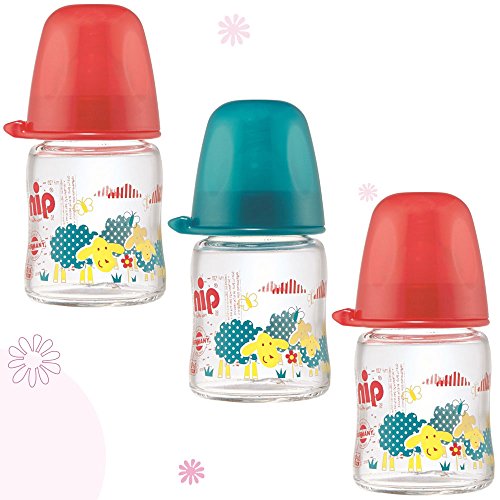 -. Title : NIP 3 Stk. Weithalsflasche aus GLAS 120 ml mit Trinksauger Größe M (Silikon / Rund / Milch / ab 0 Monate)