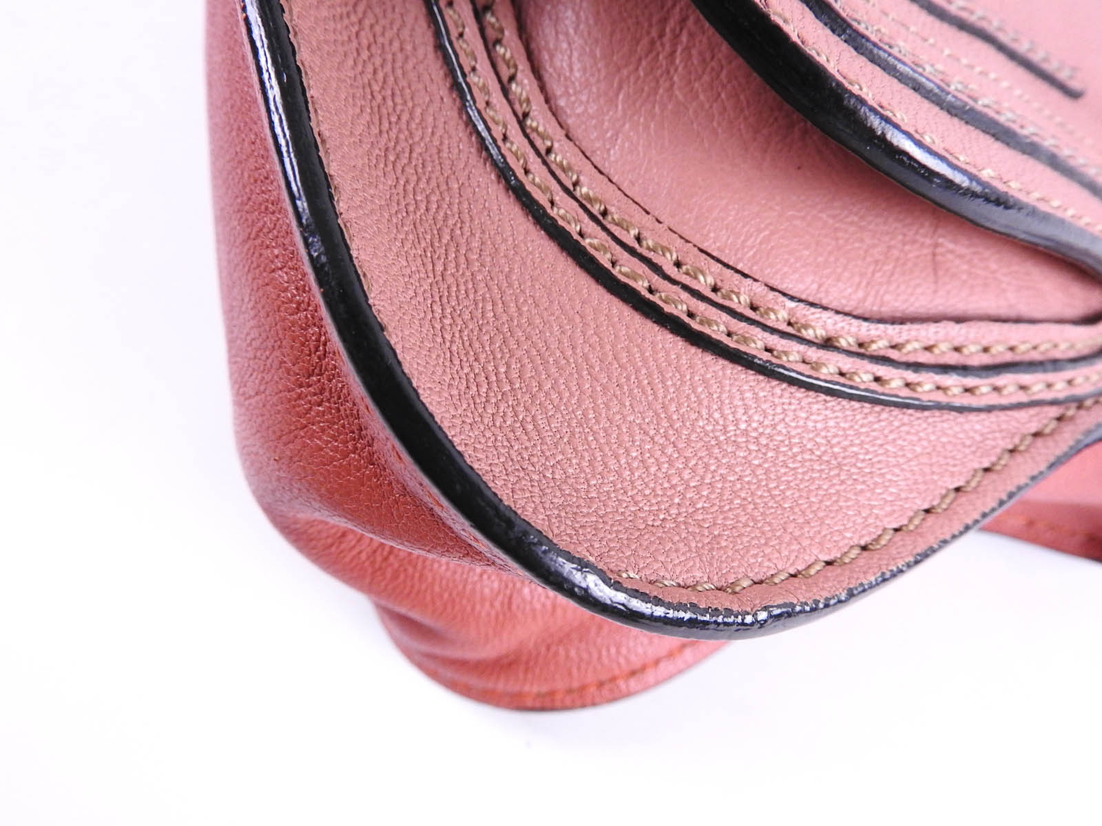 Handle: Slightly used feeling. Small scratches and stains. Some abrasions and fading at the bases of the handles. Shoulder strap: Slightly used feeling. Some fading. Small cracks in the varnish around the strap. |