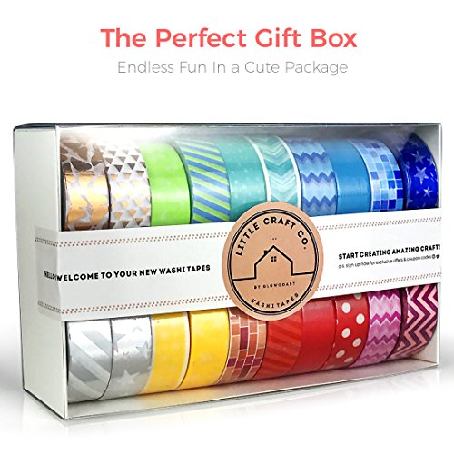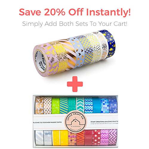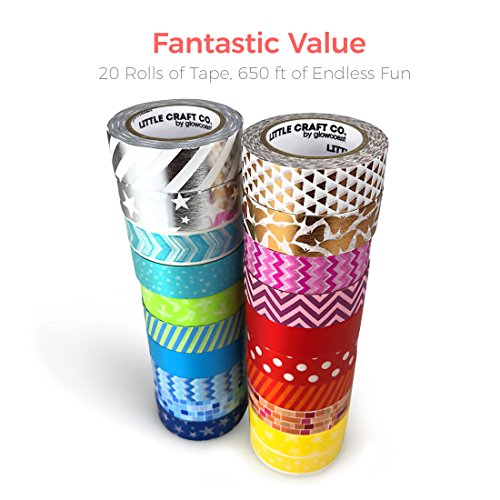 LittleCraftCo Premium Washi Tape Set - 20 Rolls. Create Unique Decorative Crafts + Beautify Bullet Journals or Planners Easily! Variety of Foil, Rainbow Colors and Patterns For Kids & Scrapbooking!