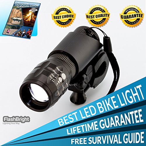 FlashBright LED Bike Light + FREE TAILLIGHT - Extremely Bright, Lightweight, Waterproof, Installs Easily, No Tools Required Fits ALL Bikes Guaranteed.