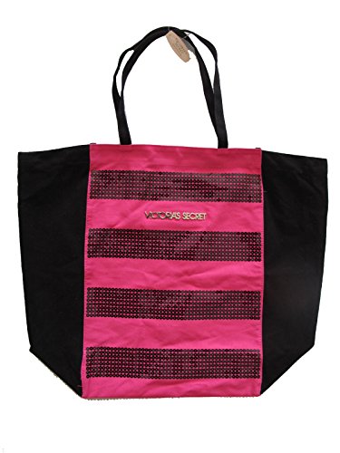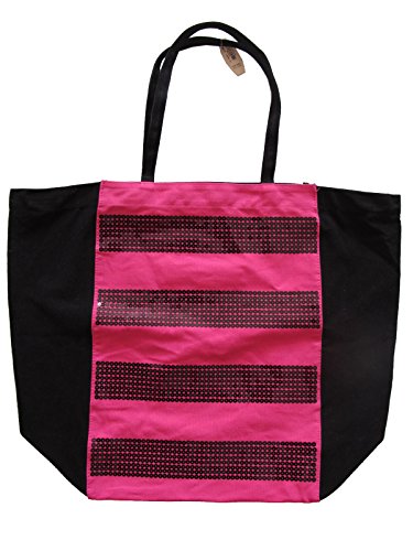 Victoria's Secret Canvas Bling Sequins Pink Black Purse Tote Handbag