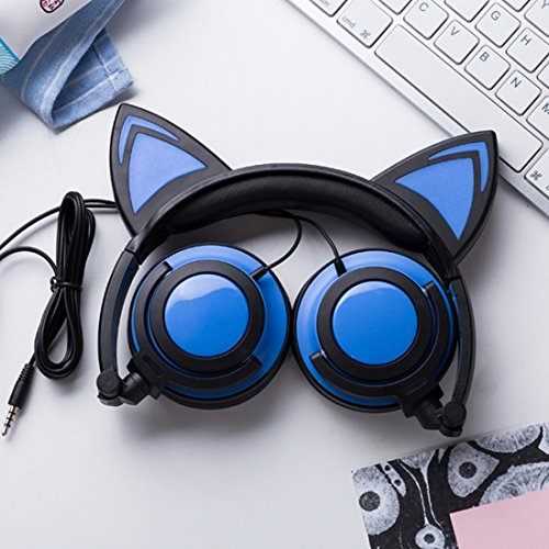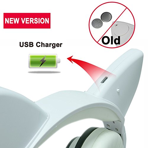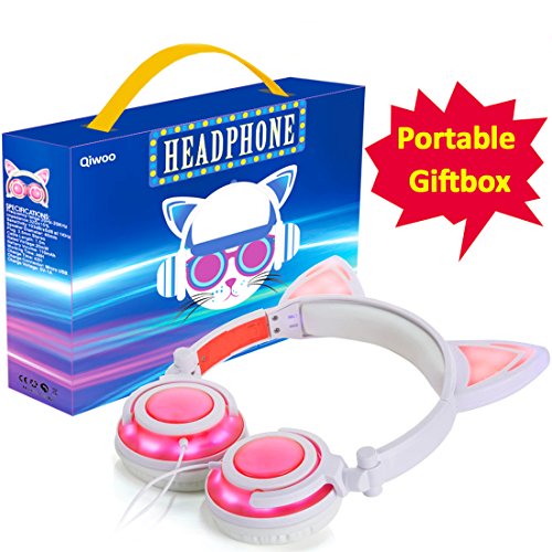 -. Title : Qiwoo Kids Headphones with Cat Ear USB Rechargeable Adjustable LED Light Up Wired Over Ear Headphones 85dB Volume Limited Compatible for iPad Tablet for Kids Girls Boys Birthday Gift