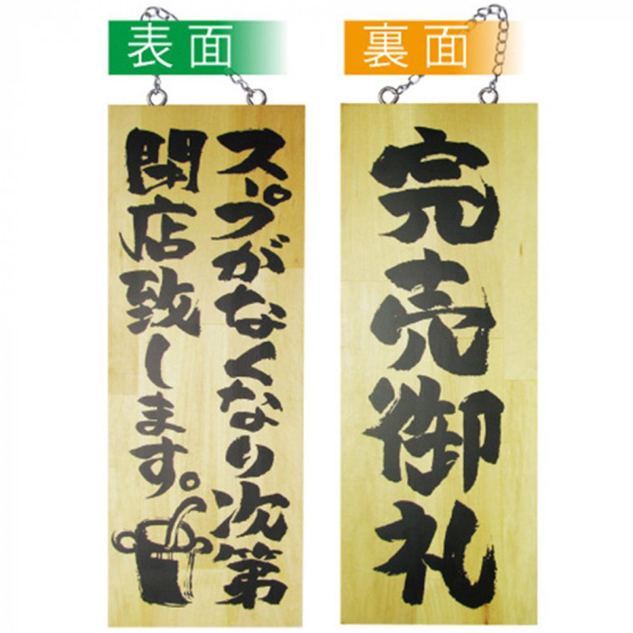 fk094igrjs店頭などにおすすめです サイズ (1枚)W150mm×H400mm×厚さ20mm 個装サイズ:40×15×2cm 重量 個装重量:585g 仕様 くさり付き 生産国 日本 木製のサインです ※雨や風で劣化する恐れがあります取り扱いにご注意ください 店頭などにおすすめです