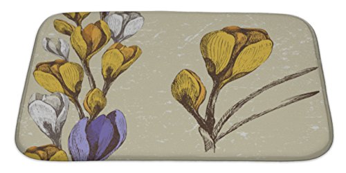 Gear New No Slip Microfiber Memory Foam Crocus Flower & Floral Border Bath Rug Mat, 34" X 21"
