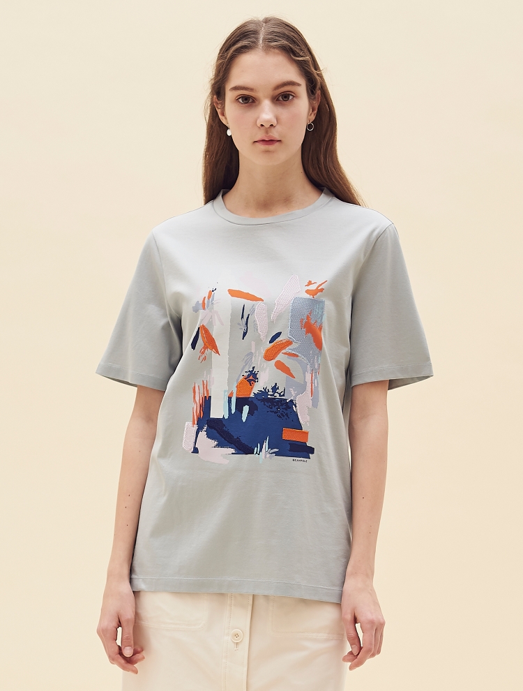 - 룩에 큰 포인트로 활용할 수 있는 컬러풀한 프린팅이 더해진 티셔츠입니다.