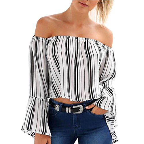 NOTE: Please compare the detail sizes with yours before you buy!!! Use similar clothing to compare with the size. Product information: Gender:Women Season:Spring,Summer Occasion:Casual Material:Chiffon Decoration:None Clothing Length:Short Pattern Type:Striped Sleeve Style:Full Collar:Slash neck Package include:1PC Women Tank tops Patterns of the real item may slightly different from the photo Size Details (1 "= 2.54cm): Size:S Bust:76-86cm/30-33.8" Sleeve:52cm/20.5" Length:33cm/13" Size:M Bust:80-90cm/31.4-35.4" Sleeve:53cm/20.9" Length:34cm/13.4" Size:L Bust:84-94cm/33-37" Sleeve:54cm/21.3" Length:35cm/13.8" Size:XL Bust:88-98cm/34.6-38.6" Sleeve:55cm/21.6" Length:36cm/14.2" 0