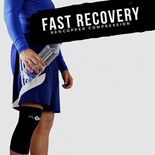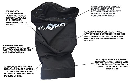 - GREAT FOR PRE AND POST INJURY: The Intu Sport Copper Compression knee sleeve is an armour for your joints and helps protect your knees from injuries during any sporting activity such as squats, power-lifting, tennis, golf, cycling and football . It compresses and relives pain pre and post injury.