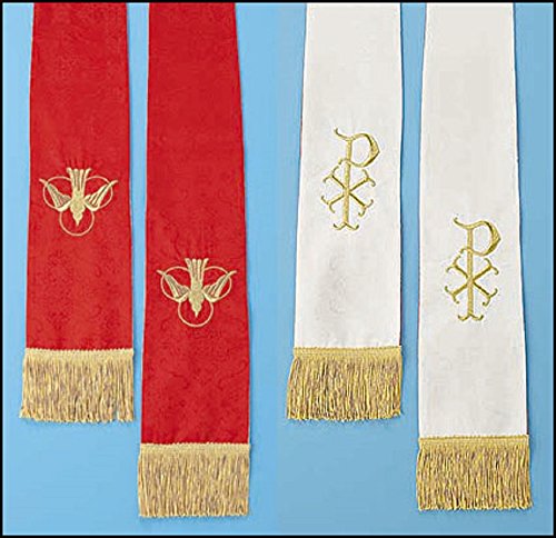Studio : AT001 Publisher : AT001 Binding : Jewelry Product Description This fully lined reversible jacquard stole has embroidered gold symbolism appropriate for the Easter, Trinity, Pentecost, Christmas, and Confirmation Seasons. Exclusive designs Reversible stoles match reversible paraments 100% Jacquard polyester Clean finish seams Fully lined Reinforced embroidered stitching Fine polyester fringe 90" L including fringe 0